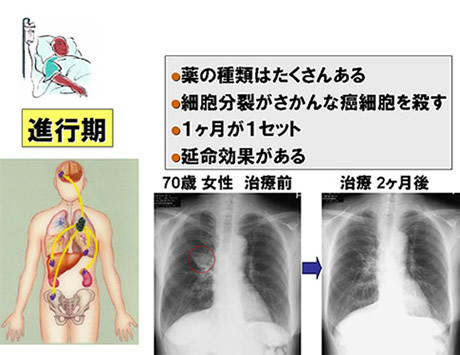 1)CEA ほかの臓器でもよく見られるマーカーです。肺がんの場合も高値を示すことがあります。肺がんの治療を行う際、CEAの値が治療の効果の指針になることもあります。2)SCC 扁平上皮癌ではよく見られるマーカーです。3)SLX 腺癌の場合に見られるマーカーです。4)NSE 小細胞癌で見られるマーカーです。やはり治療の効果の指針になります。5)CYFRA21-1 肺がんのときに高くなりますが、炎症性疾患でも高くなることがあります。有用な検査であるといえます。6)ProGRP 肺小細胞癌のときに高い値を示すマーカーです。これが高いと小細胞癌の可能性が高いといわれています。